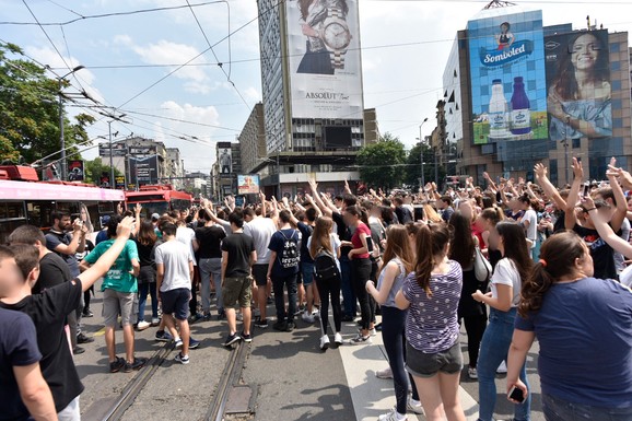 Takođe, javljaju reporteri „Blica“, učenici su blokirali saobraćaj ispred Ministarstva prosvete, zgradu su gađali jajima, a zatim su pokušali i da upadnu u Ministarstvo.